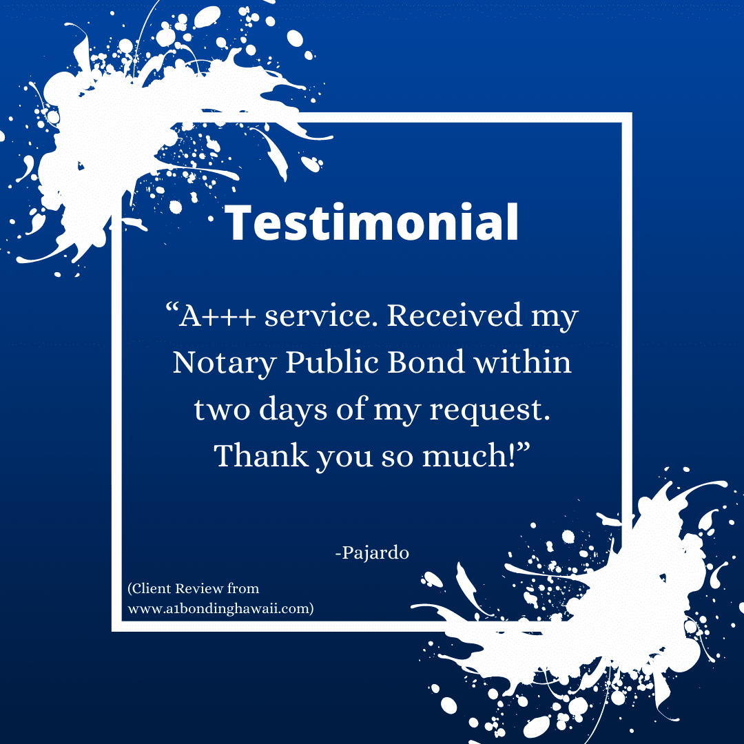 I was in dire need of a Notary Bond after the first company I requested a bond from did not follow the DAG’s bond requirements. Ni guided me as I navigated through their website and made sure I provided all the information needed for my bond. After I provided my information, she confirmed receipt of it. In less than 10 minutes my bond was ready for pick up AND done as required by the State’s DAG’s office. Their pricing is also reasonable! I truly appreciate that they provide Notary service at their office too!! Thank you Ni and the team at A1 Bonding for the outstanding customer service!! I will definitely be using A1 Bonding for all my bonding needs!